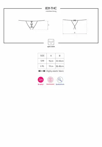 Эти стринги доступны в размерах L/XL, что гарантирует их комфортную посадку на большинстве типов телосложения. Если вы ищете что-то, что можно надеть для особого случая, или просто хотите добавить изюминку в свою повседневную коллекцию нижнего белья, стринги Obsessive 831-THC-1 с вырезами L/XL — идеальный выбор.