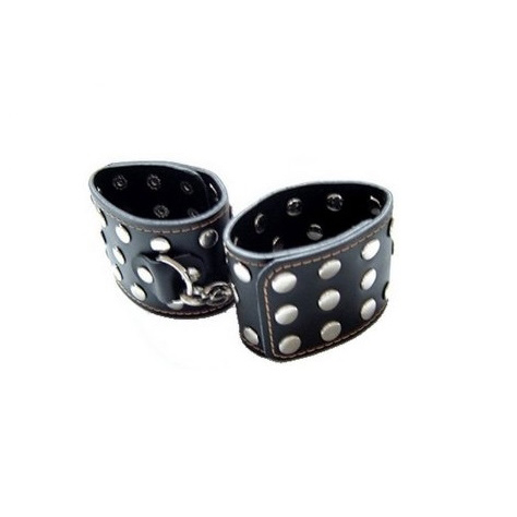 Шикарные, черные наручники с заклепками по всей поверхности подойдут для БДСМ развлечений или послужат дополнительным аксессуаром к вашему эротическому образу. Девайс соединен небольшой цепочкой, которая ограничивает движения партнера. Три ряда кнопок позволяют отрегулировать диаметр изделия под размер запястья. Искусственная кожа мягко прилегает к телу, не вызывает дискомфорта, не натирает и не оставляет следов на теле. Для дополнительной стимуляции специалисты нашего магазина рекомендуют купить дополнительные аксессуары, чтобы любовные игры были разнообразными и неповторимыми.