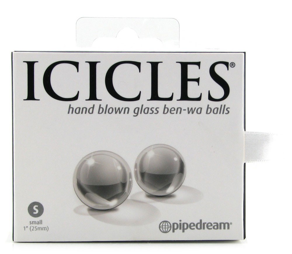 Вагинальные шарики ICICLES BEN-WA BALLS SMALL. Сделаны из специального стекла, очень гладкие. Для более ярких ощущений можно нагреть или охладить под струей воды. Диаметр – 2,5 см , вес – 17 грам (каждый).