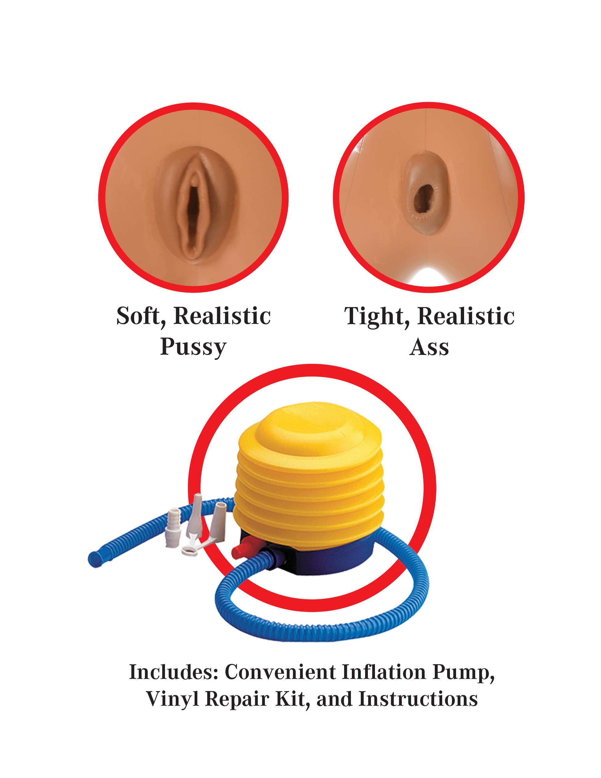 • В комплект также входит насос, набор для ремонта куклы, инструкция.
