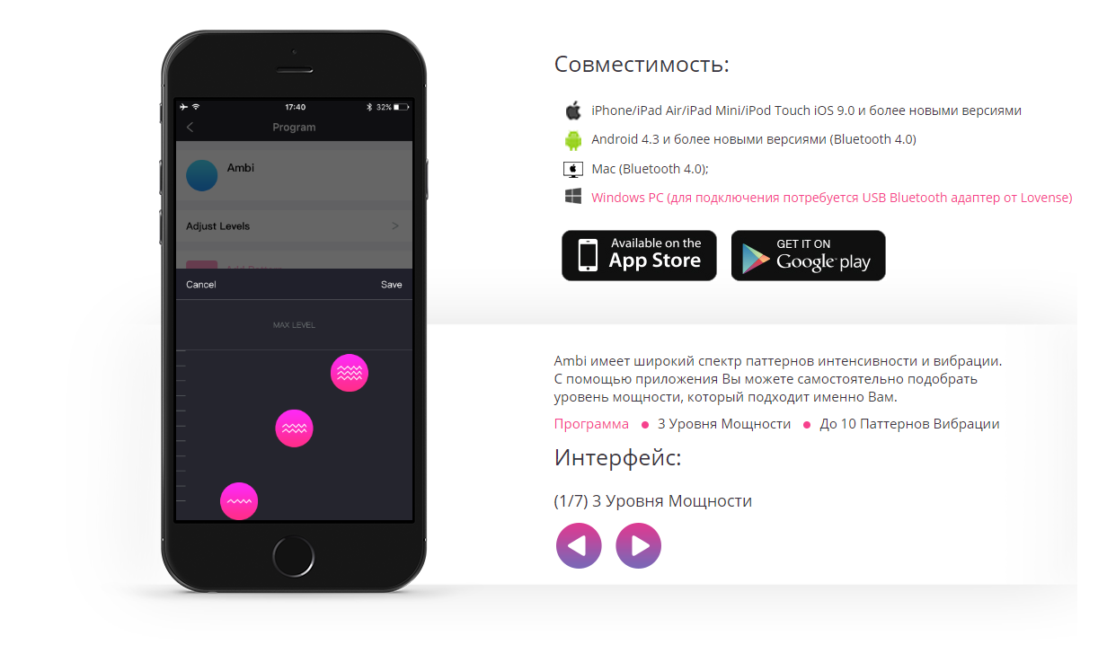 Так как вибратор Lovense – Ambi является технологической новинкой, основные его достоинства связаны с этой сферой: