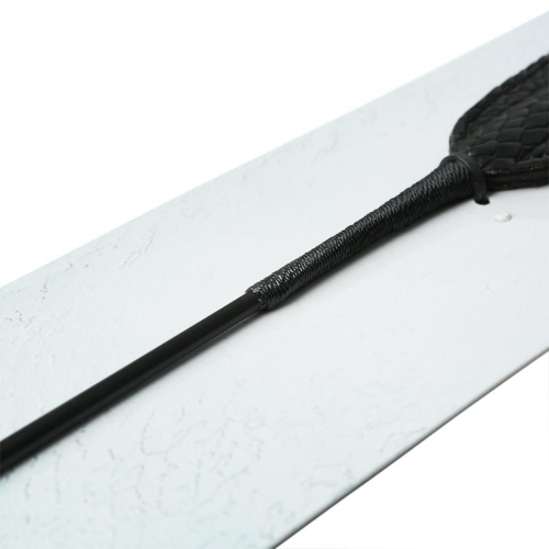 Достаточно тяжелая шлепалка имеет хороший баланс, удобно размещается в руке. Благодаря раздвоенному окончанию, во время «удара» звук получается относительно хлестким, производящим потрясающий эффект на «избиваемого». Рукоятка с оплеткой, имитирующей настоящую кожу, небольшими искусственными черными кристаллами придают девайсу неповторимый и дорогой вид. При использовании игрушка не будет скользить в ладони, шлепок будет уверенным, а его сила будет зависеть от вашего настроения и пожеланий.Для ухода за своим любимым интим-продуктом применяйте специальные антибактериальные средства для ухода за подобными вещами. Не допускайте попадания продолжительное время прямых солнечных лучей, храните в сухом виде отдельно от других секс-изделий. Эти нехитрые правила позволят сохранить шлепалку в первоначальном виде, а постельные утехи, приносящими радость и удовлетворение любых желаний, фантазий.Обратившись в нашу компанию, вы купите высококачественную интимную продукцию по доступным ценам, с последующей доставкой по адресу. Сертифицированные изделия отвечают всем требованиям заявленным производителем.