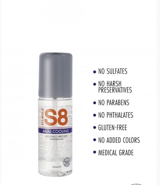 Stimul8 Охлаждающая анальная смазка на водной основе, идеальная смазка для самых интимных моментов. Эта смазка предназначена для обеспечения ощущения охлаждения, которое усилит удовольствие и сделает анальную игру более приятной. Он создан из натуральных ингредиентов и не содержит парабенов, глицерина и гормонов. Флакон объемом 125 мл удобен в использовании и хранении, что делает его идеальным для путешествий или скрытого хранения дома.