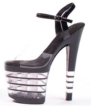 Женские туфли на прозрачной платформе черного цвета. Высота каблука 20 см, высота платформы - 10 см.